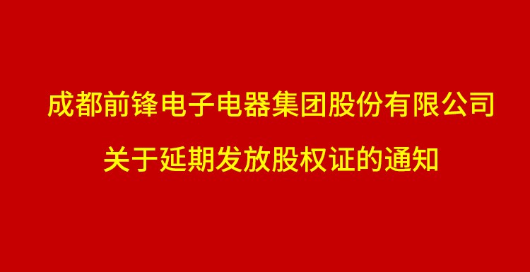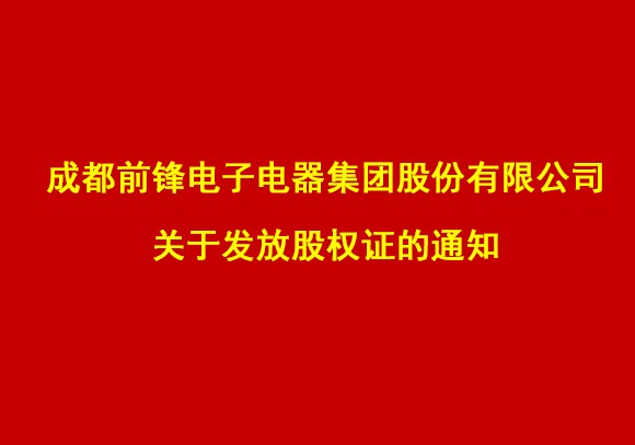 成都前鋒電子電器集團(tuán)股份有限公司關(guān)于發(fā)放股權(quán)證的通知