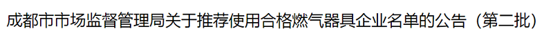 前鋒入選市監(jiān)局《關(guān)于推薦使用合格燃?xì)馄骶咂髽I(yè)名單》