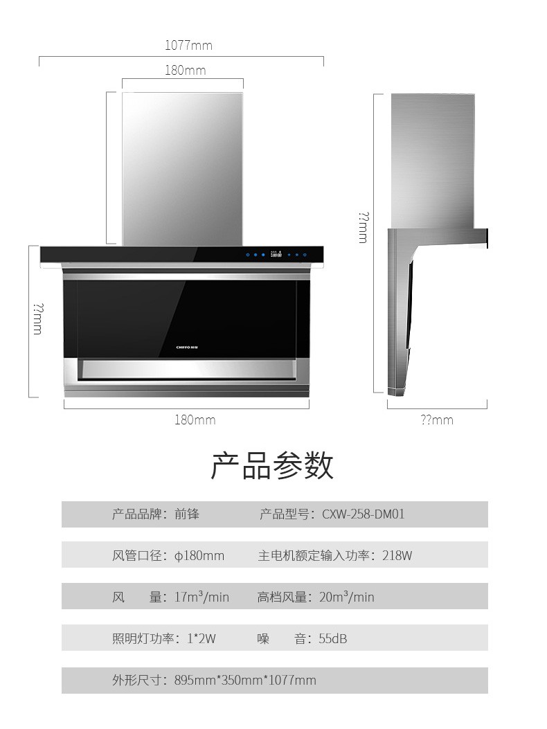前鋒平板雙吸油煙機(jī)DM01