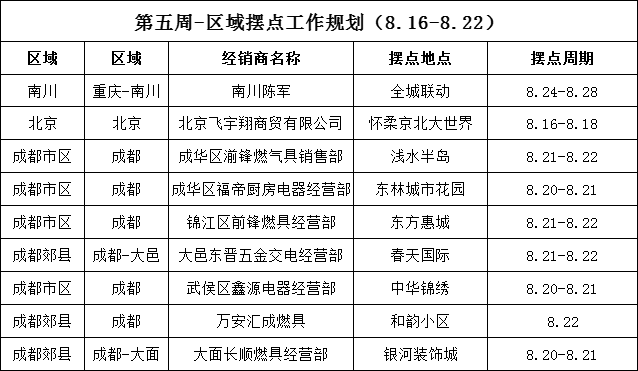 服務中國行 全國擺點信息(8.16-8.22)